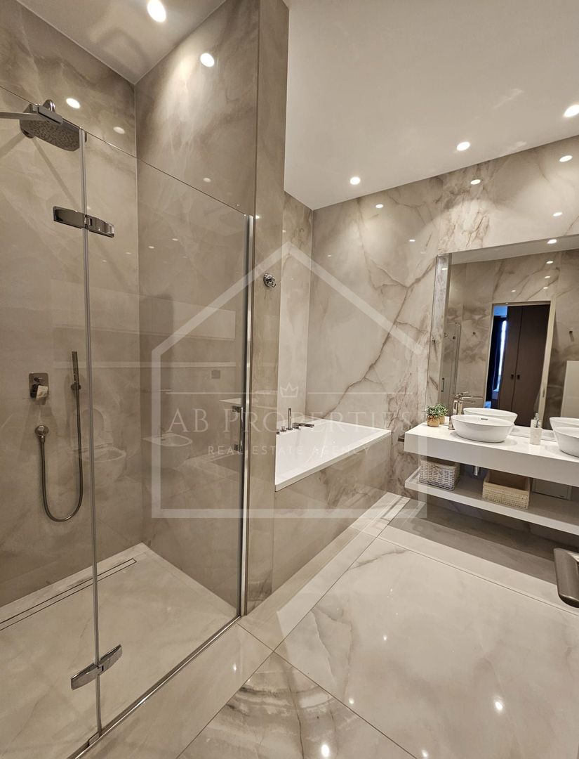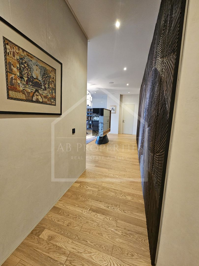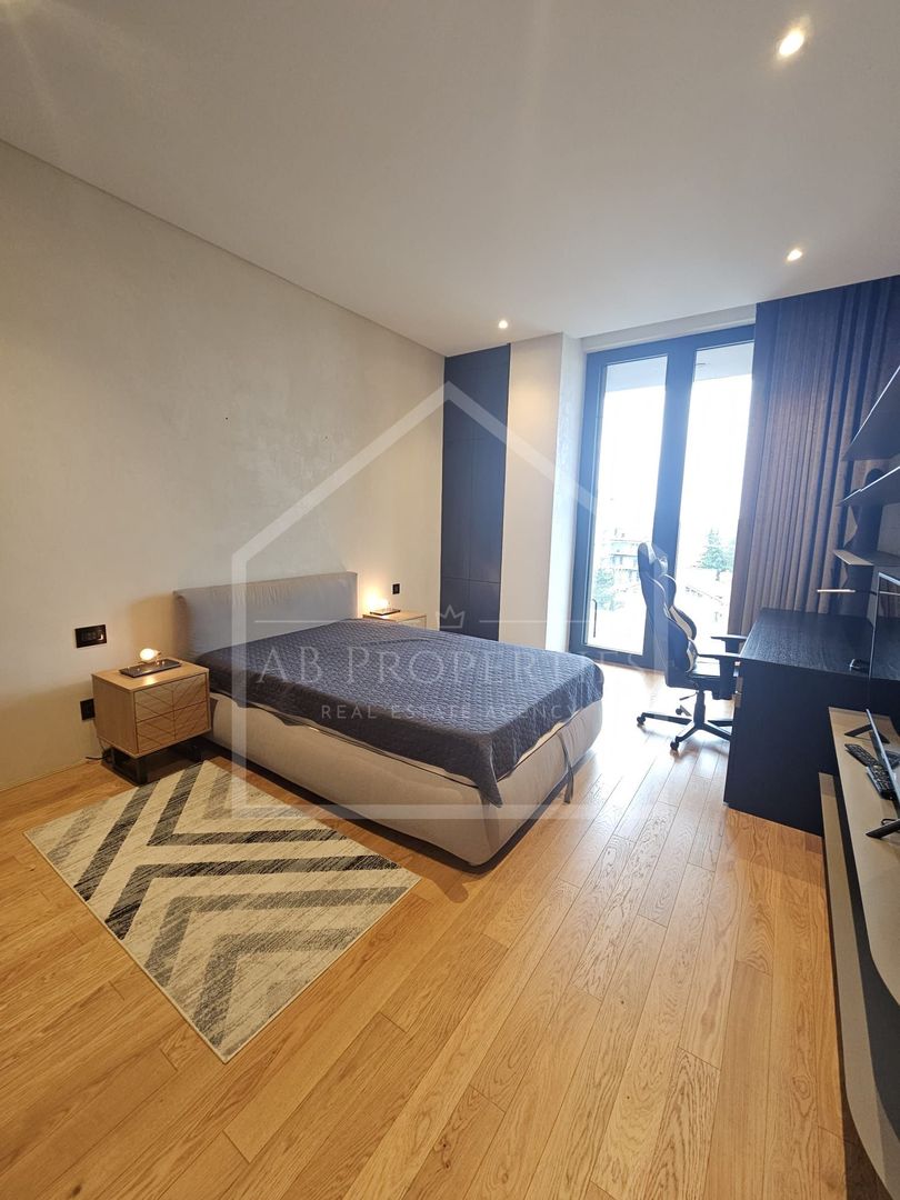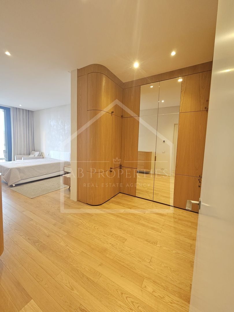 AB Properties are plăcerea de a vă prezenta o proprietate cu adevărat remarcabilă: un apartament exclusivist de 4 camere, situat în Rahmaninov Residence – reper al rafinamentului și al vieții urbane premium din zona de nord a Bucureștiului. Cu o suprafață utilă impresionantă de 212 mp și două terase generoase totalizând 43 mp, această reședință oferă o deschidere spectaculoasă către Parcul Verdi și lacul Floreasca, îmbinând armonios intimitatea cu panorama urbană de excepție. Spațiul interior a fost conceput pentru a oferi confort absolut și fluiditate, fiind compus dintr-un living amplu, scăldat în lumină naturală datorită suprafețelor vitrate extinse, trei dormitoare elegante și patru băi finisate la standarde înalte, inclusiv o zonă matrimonială cu baie proprie, dotată atât cu cadă, cât și cu duș. Amenajarea interioară reflectă un stil contemporan sofisticat, în care materialele premium, texturile atent alese și piesele de design se îmbină într-un ambient coerent, echilibrat și distinct. Apartamentul se închiriază complet mobilat și utilat, fiind pregătit pentru a primi viitorii rezidenți fără compromisuri. Proprietatea beneficiază de două locuri de parcare în subteran, iar accesul în complex este securizat, cu recepție și pază permanentă, oferind un nivel ridicat de confort și siguranță. O alegere ideală pentru cei care apreciază discreția, eleganța și poziționarea privilegiată. Prețul nu include TVA, utilitățile și costurile de mentenanță.