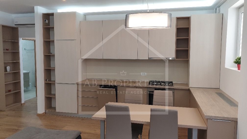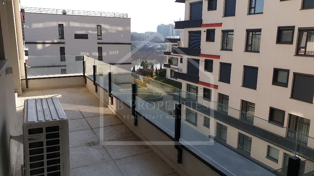 AB Properties va propune spre închiriere un apartament de 2 camere foarte spațios, in Complexul Laguna Residence, pe malul lacului Tei. Acesta este la etajul 3 si are 68 mp utili (include terasa), cu vedere spre lac si parc. Apartamentul este complet mobilat, iar mobilierul este executat pe comanda. Incalzirea e cu centrala termica Vaillant cu termostat programabil si răcirea cu dublu split Hyundai. Masina de spalat rufe este Indesit, cu uscator. Bucataria este utilata cu frigider incorporat, masina spalat vase, hota, plita pe gaz si cuptor electric Whirlpool. Impreuna cu apartamentul se închiriază un loc de parcare in subteran si o boxa de cca 3mp in subsol, aproape de lift. Chiria este de 850 Euro/luna, incluzand si locul de parcare subteran+boxa. Pentru vizionari, echipa AB Properties va sta la dispoziție!