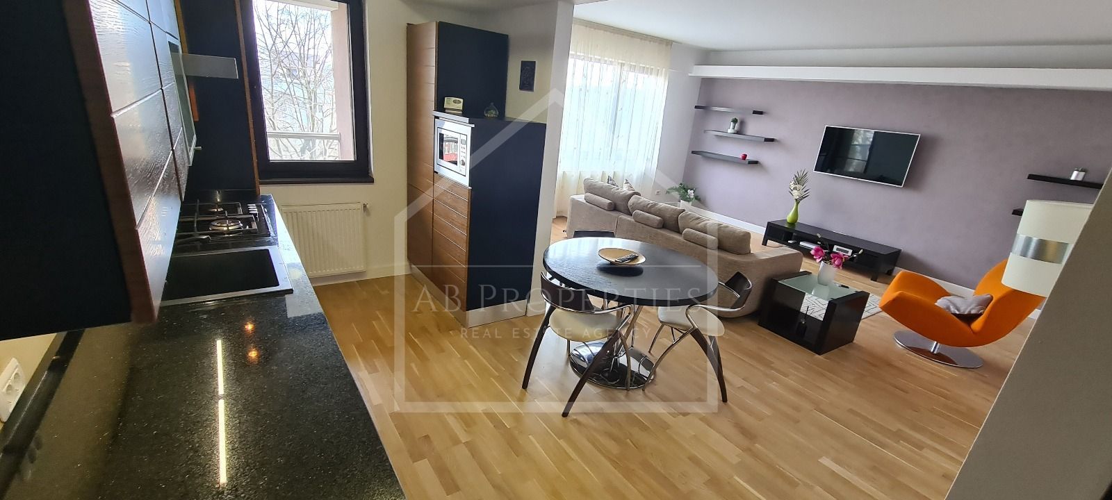 AB Properties va prezinta un apartament cu 2 camere de inchiriat in zona Aviatiei. Apartamentul este complet mobilat si utilat, dispune de o compartimentare foarte buna, este luminos si spatios. In pretul afisat sunt incluse un loc de parcare subteran si o boxa. Dispune de acces facil catre toate zonele de interes, dar si la mijloacele de transport in comun. In imediata apropriere se afla Promenada Mall, restaurante, scoli, gradinite, Parcul Herastrau, etc. Pentru mai multe detalii va stam la dispozitie! Va invitam la vizionari!