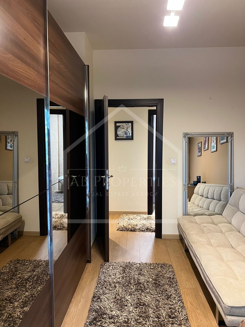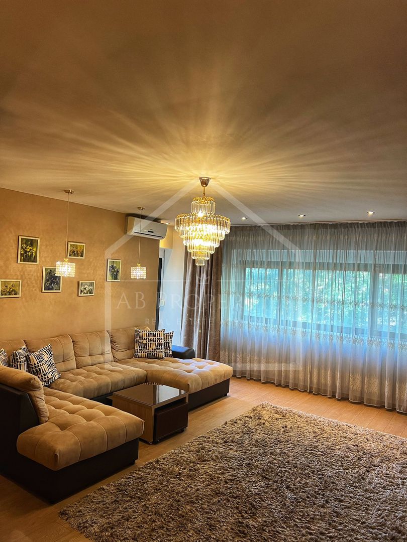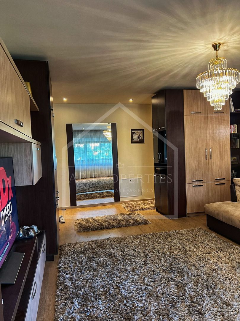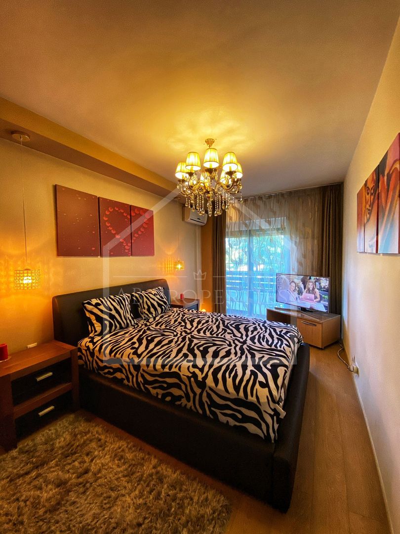 Livingul este foarte spațios, amenajat în nuanțe calde, dotat cu Smart TV Sony Bravia diagonala 139 cm, dormitorul dotat cu Smart TV Samsung diagonala 108 cm, ambele camere au instalat aer condiționat.