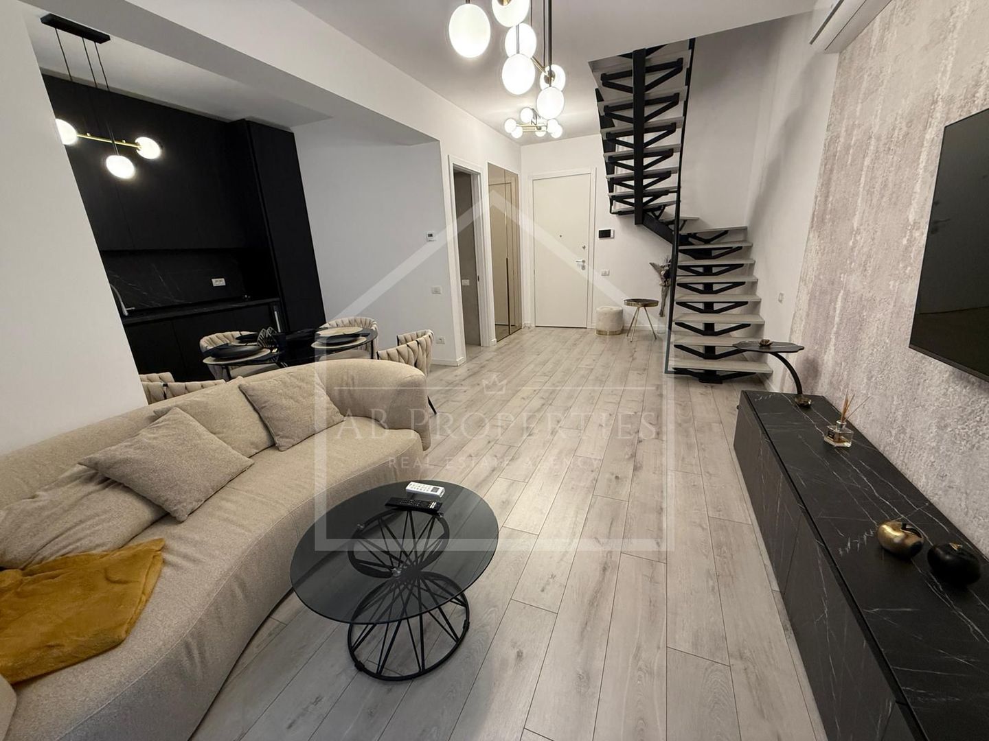 AB Properties va prezinta un apartament cu 3 camere tip duplex, situat in zona Herastrau, oferă un stil de viață modern și confortabil, într-una dintre cele mai dorite zone din București. Parterul cuprinde un open space generos, integrând o bucătărie modernă, complet echipată, o zonă de dining, un living confortabil și un grup sanitar, completate de o terasă spațioasă de 18mp. La etaj, veți descoperi un dormitor matrimonial cu baie privată și o cameră versatilă ce poate fi folosită ca birou și dormitor suplimentar. Apartamentul dispune de 74mp utili și a fost gândit cu atenție la diverse nevoi, inclusiv scenarii multiple de iluminare, creând atmosfera potrivită pentru fiecare moment. Luxul și confortul sunt reprezentate de finisajele premium și mobilierul high-end, iar șemineul adaugă o notă caldă și primitoare. Funcționalitatea se îmbină perfect cu frumosul, apartamentul fiind dotat cu dressinguri generoase pentru organizare impecabilă, materiale ușor de îngrijit și unități de aer condiționat în toate încăperile. Fiecare element decorativ a fost ales cu grijă, iar apartamentul este pregătit pentru a fi locuit imediat. Sunt incluse 2 locuri de parcare subterane.