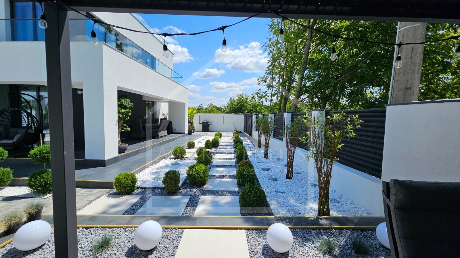 Descoperiți o proprietate exclusivistă situată în una dintre cele mai apreciate zone rezidențiale din Snagov, unde rafinamentul arhitectural se îmbină armonios cu frumusețea naturală a lacului. ✨ Caracteristici principale: Living spațios cu ferestre panoramice și acces direct către terasă și grădină 2 dormitoare elegante, cu multă lumină naturală și intimitate Bucătărie open-space, complet echipată cu electrocasnice premium 2 băi moderne, finisate cu materiale de lux și design contemporan Terasă generoasă cu priveliște spectaculoasă asupra lacului Grădină privată amenajată și locuri de parcare dedicate ???? Beneficii: Design modern și compartimentare optimă Construcție solidă, cu materiale de înaltă calitate Vedere panoramică asupra lacului Snagov Acces rapid către București, dar cu liniștea și exclusivitatea unei zone de prestigiu Această proprietate reprezintă alegerea perfectă pentru cei care caută un cămin rafinat, o reședință de vacanță sau o investiție într-o zonă rezidențială premium. ???? Locație: Snagov – zonă exclusivistă, apreciată pentru frumusețea naturală, siguranță și accesibilitate.