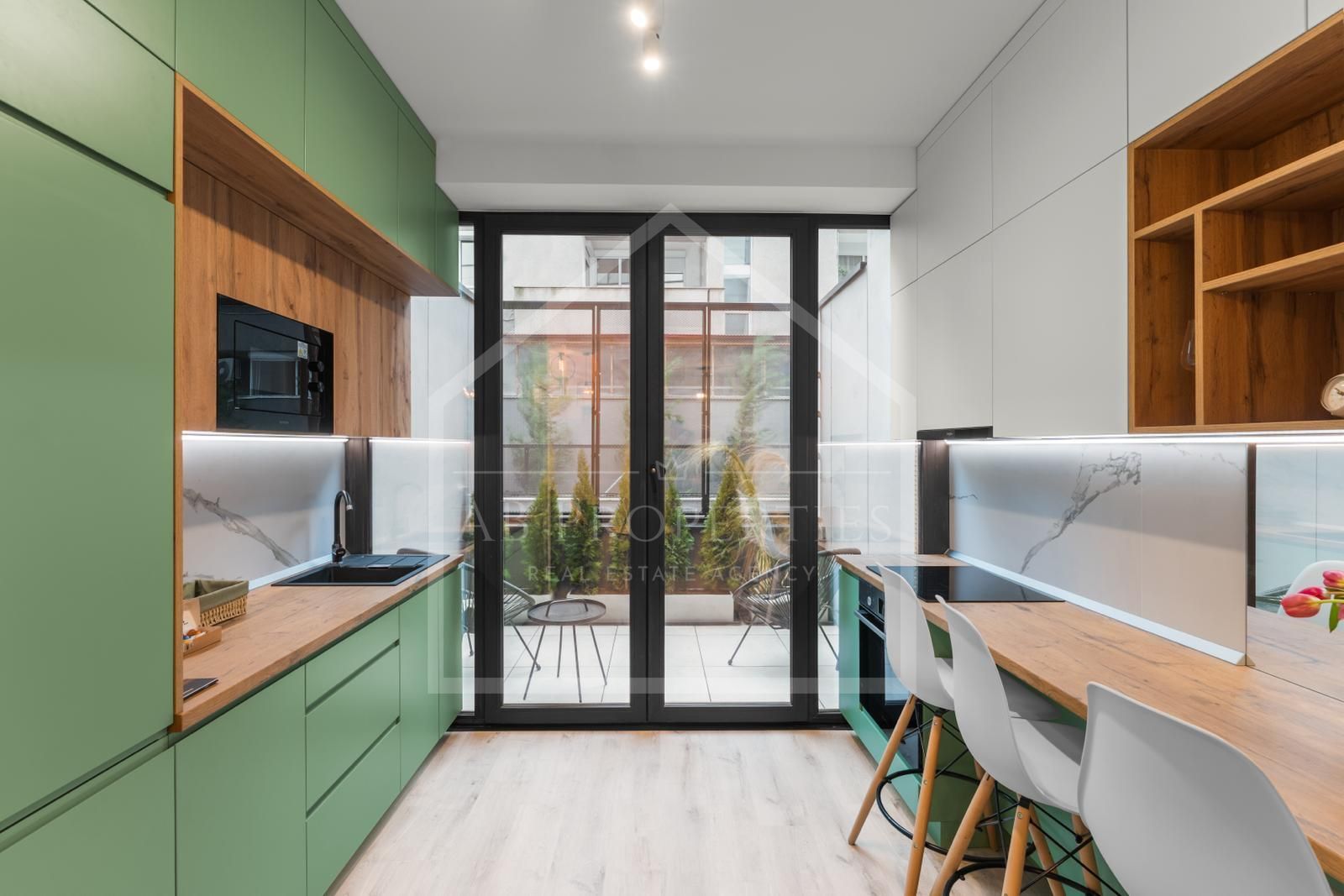 AB Properties va propune spre inchiriere un duplex cu 2 camere in ansamblului WIN Herastrau, in imediata apropiere a parcului Herastrau. Apartamentul este dispus pe 2 niveluri (P+etaj), fiind complet mobilat si utilat. Ca si dotari, se evidentiaza prin: videointerfon, aer conditionat pe fiecare etaj, sistem centralizat de incalzire in pardoseala, terasa, 2 grupuri sanitare, racitor vinuri, masina spalat vase, masina de spalat rufe. Locul de parcare se inchiriaza separat Ansamblul din care face parte, pune la dispozitia locatarilor numeroase optiuni de petrecere a timpului liber, cum ar fi: cafenea, beauty salon, cigar bar, pizzerie, studio pilates etc. Pentru mai multe detalii va stam la dispozitie!