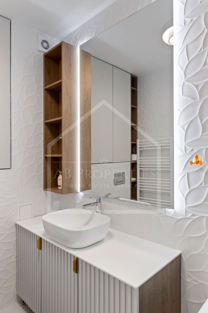 AB Properties ofera spre închiriere un apartament spațios și elegant cu 4 camere, situat în zona Pipera, una dintre cele mai apreciate zone rezidențiale din nordul Bucureștiului. Proprietatea are o suprafață utilă de 116 mp și se remarcă prin compartimentarea eficientă și designul interior premium. Dotari: 4 x Aer conditionat Canapea extensibila cu pat Smart TV 8k 75" sufragerie + 65" 4k Dormitor Plita inductie Masina spalat Rufe si Uscator suprapus, AEG Masina spalat vase Frigider Side-by-Side Cuptor electric Incalzire in pardoseala pe 5 zone, centrala proprie (de apartament). Pretul include 2 locuri de parcare in parcarea acoperita. Nu se inchiriaza fara parcare! Statie de incarcare EV 22kW in fata blocului. Se percep 2 luni de garantie. Zona oferă acces rapid către centrele de business din nordul orașului, școli și grădinițe internaționale, restaurante, centre comerciale și principalele artere de circulație.